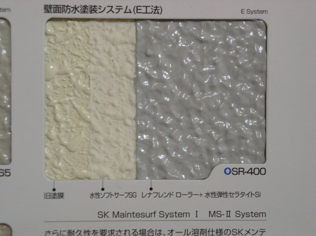一般的に2液型の塗料は1液型と比較して耐候性に優れています。2液型のなかでもシリコン樹脂やフッ素樹脂の含有量の多い塗料を適切な工程で塗替えた場合には、次回までの塗替え周期を延ばすことができます。